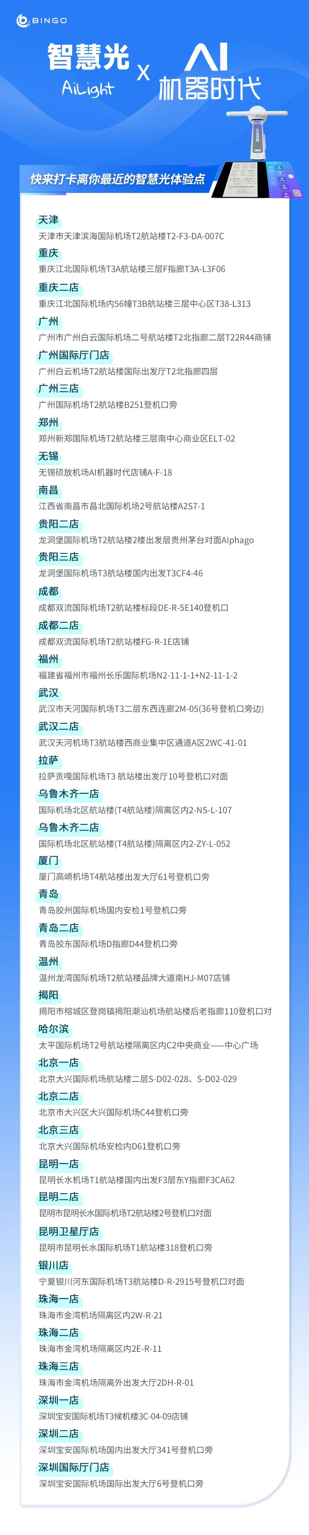 重新定义学习,照亮成长每一步。查看43 家机场具体位置,下次带娃候机就来AI机器时代爱宾果智慧光体验区,让孩子的碎片时间变成 “涨分时刻”!