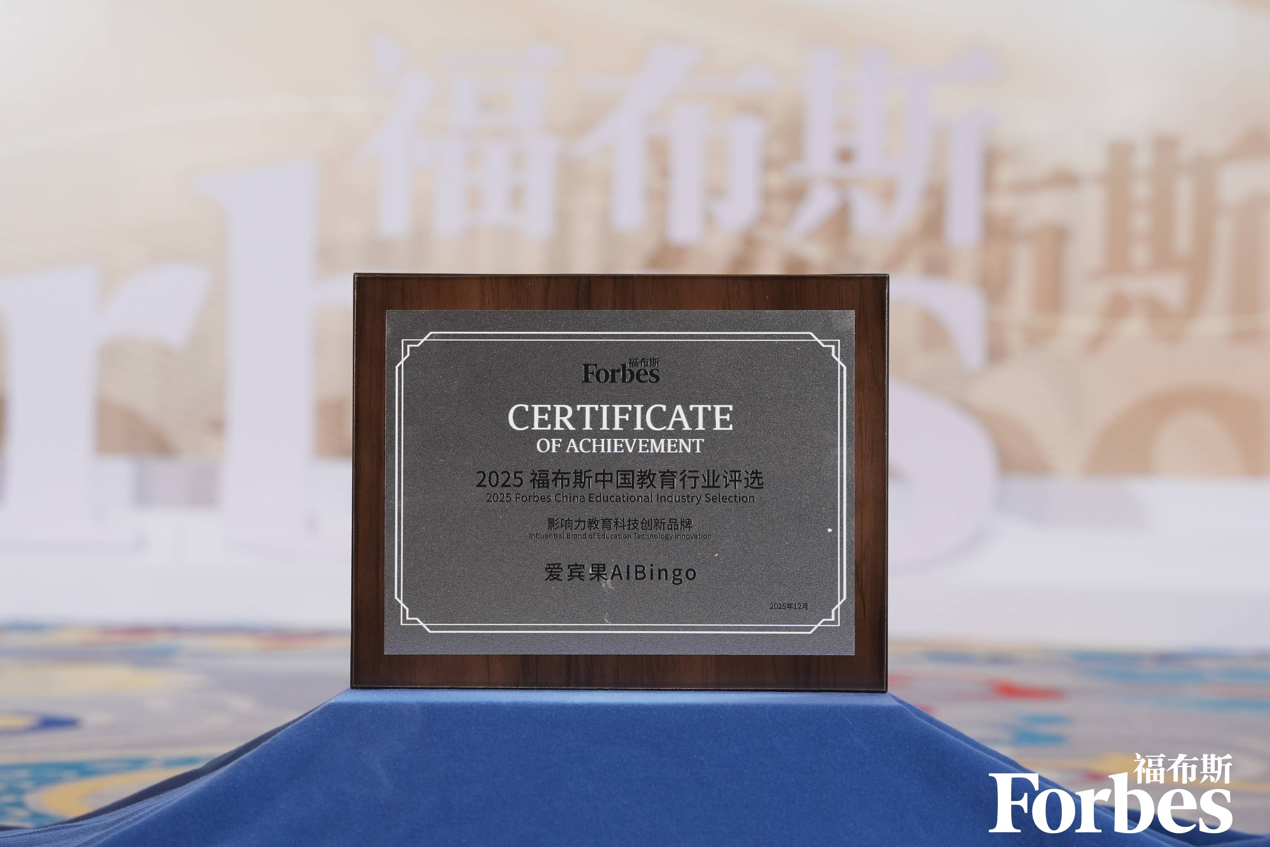 此次斩获“2025福布斯中国影响力教育科技创新品牌”,对爱宾果而言,既是一份沉甸甸的荣誉,也是教育科技行业价值的重要肯定。