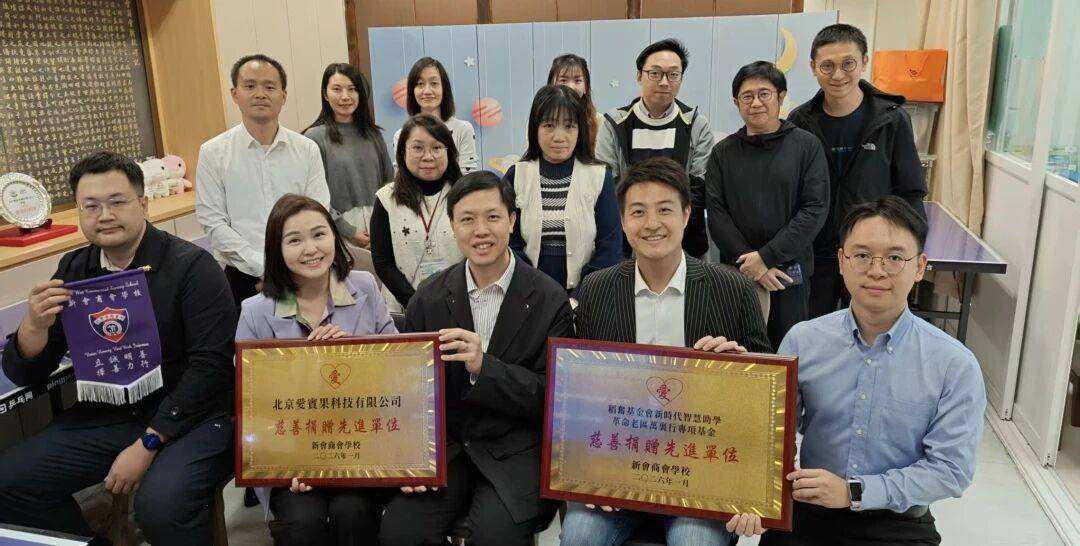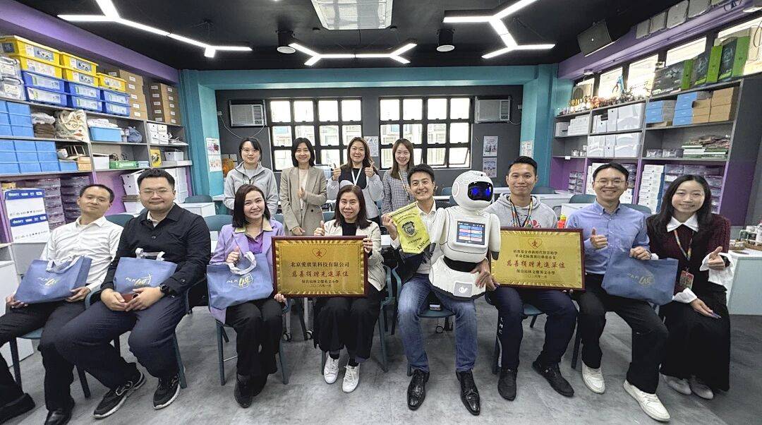 作为对爱宾果公益之举与教育担当的肯定,胡立峰校长、黄嘉茵署理校长分别代表新会商会学校、保良局林文灿英文小学向爱宾果颁发“慈善捐赠先进单位”感谢牌匾,表彰其以硬核AI科技、教育资源深耕香港校园沃土,打破地域与技术壁垒,为香港青少年解锁科技学习新范式。