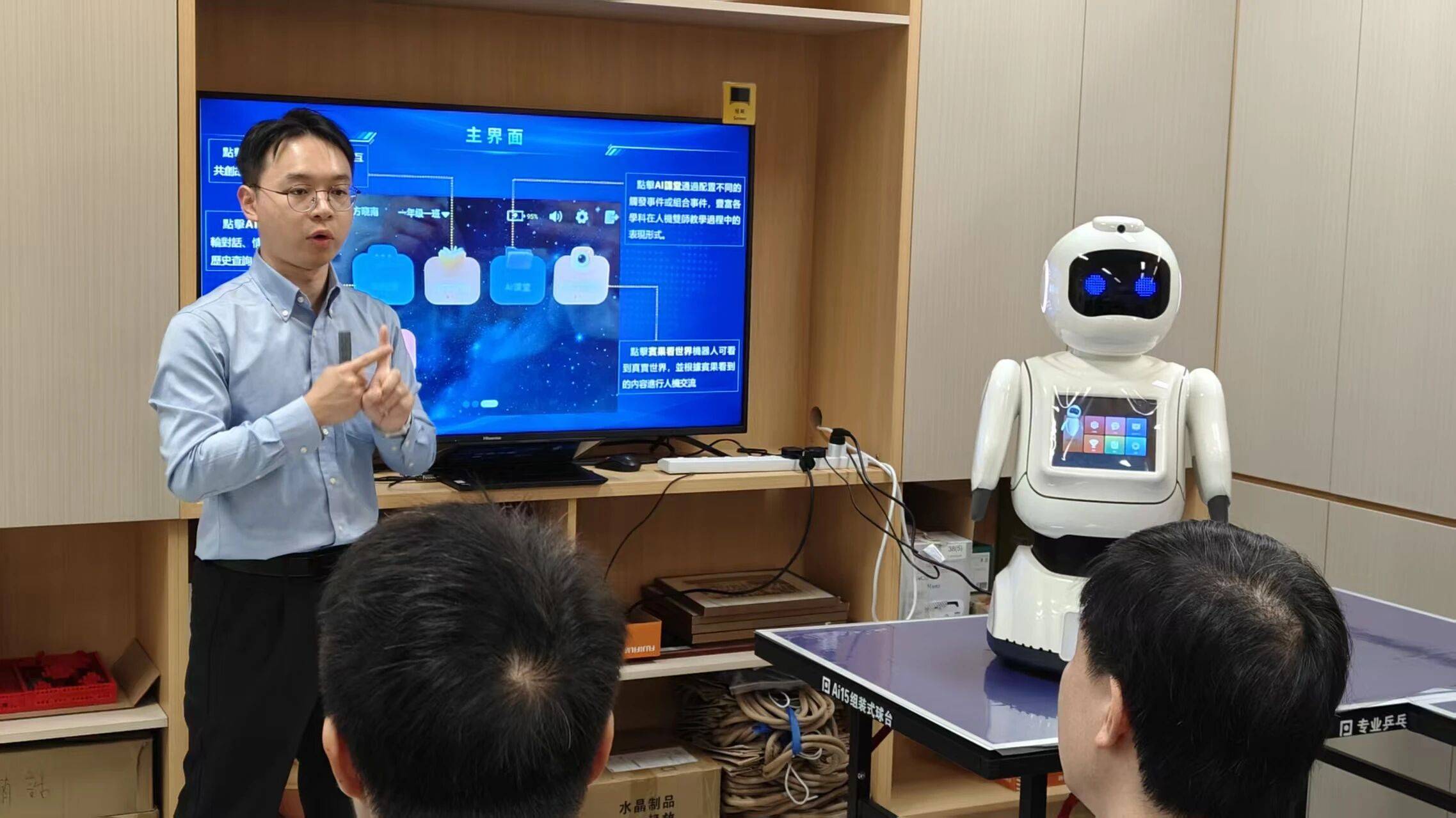 AI科技进校园,不仅在于机器人设备,更在于教育应用的交付。启动仪式后,爱宾果专家讲师方晓南为两校教师分别开展了AI助教机器人实操培训,并重点演示了全新升级的ERoS 2.0智能教育系统特色。