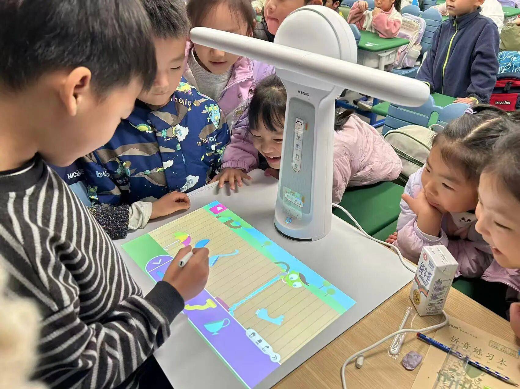 作为展厅内最懂孩子的“光”,爱宾果自主研发的宾果智慧光助学机器人,集成了全球领先的多模态感知、认知交互技术。其创新的AI+AR“无屏交互”,不仅是一款护眼台灯,更是AI一对一私教、学习机、投影仪,并通过海量真实教育场景的验证。