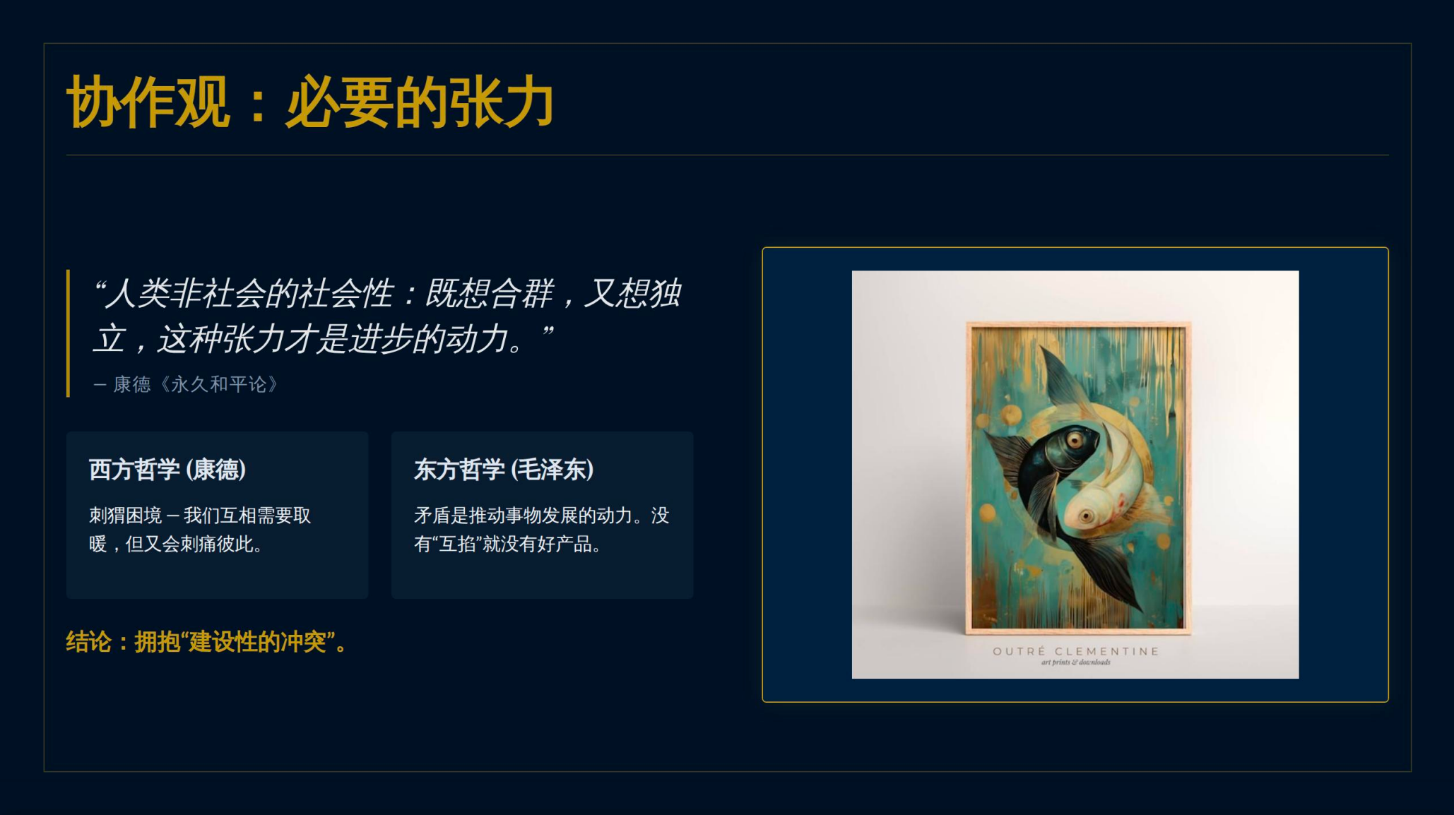 毛主席在《矛盾论》中阐述“矛盾是事物发展的动力”,两者共同揭示了一个关键真理:有效的协作必然伴随建设性的矛盾,这是一种“必要的张力”。