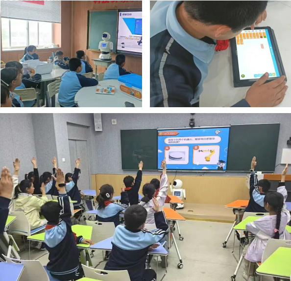 在庆城县逸夫小学,宾果助教机器人化身“AI 小讲师”,为同学们科普人工智能知识,通过趣味互动问答、动手实践体验等形式,让学生在沉浸式课堂中感知科技魅力、提升创新实践能力。