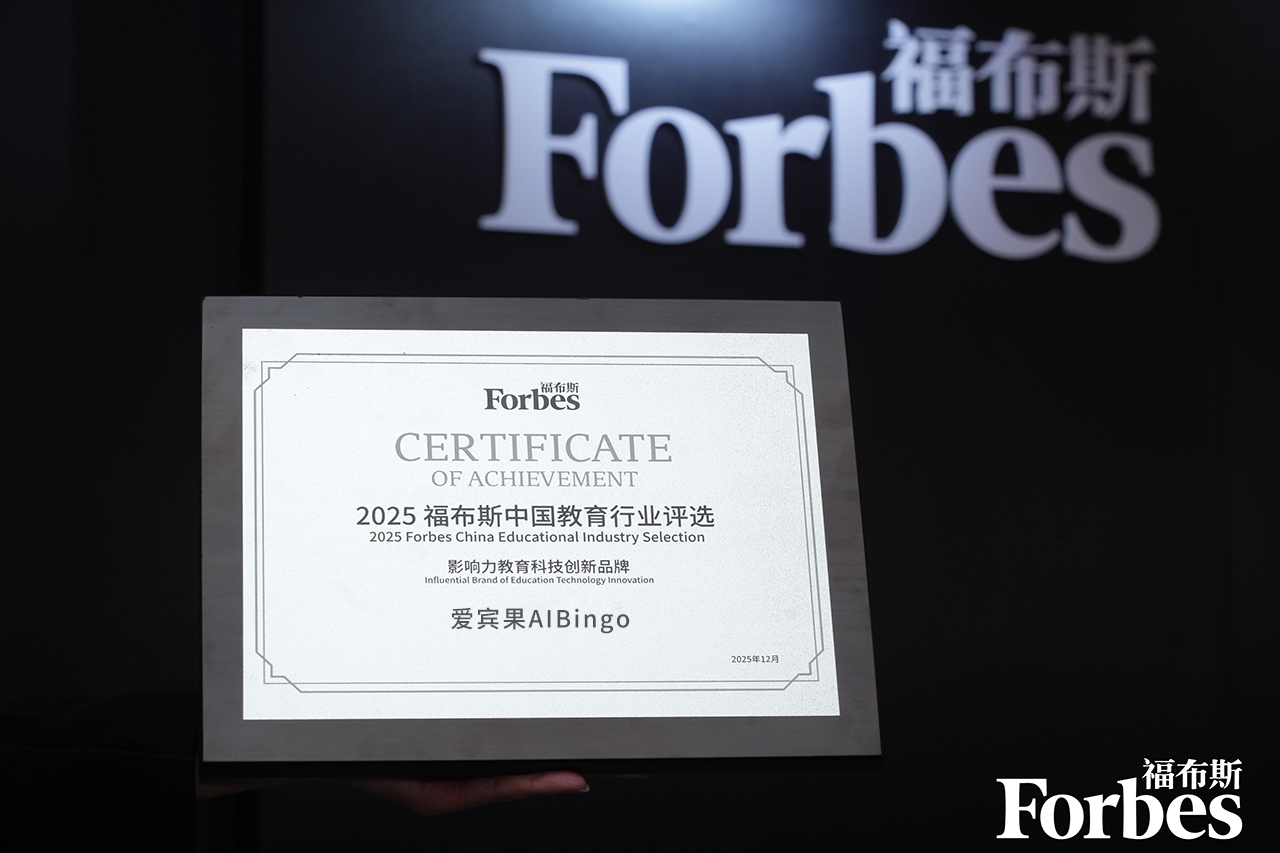 12月15日,2025福布斯中国教育行业评选颁奖典礼圆满落幕。爱宾果凭借在教育科技领域的持续深耕与前沿创新,从众多优秀企业中脱颖而出,成功荣获“2025福布斯中国影响力教育科技创新品牌”!